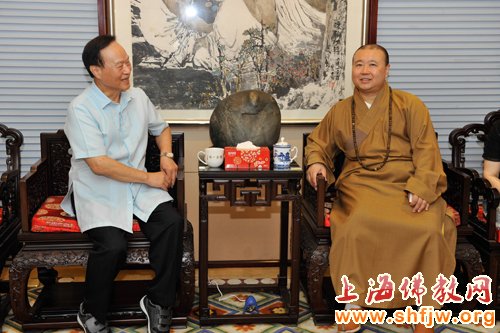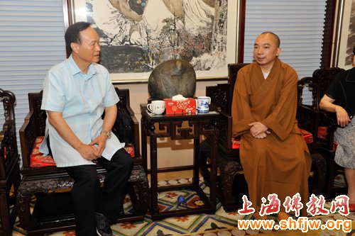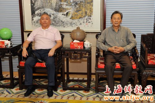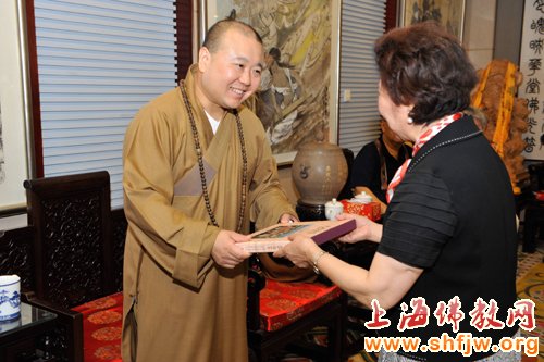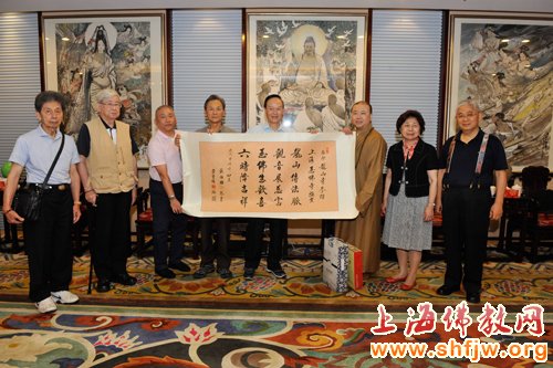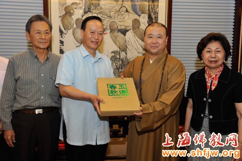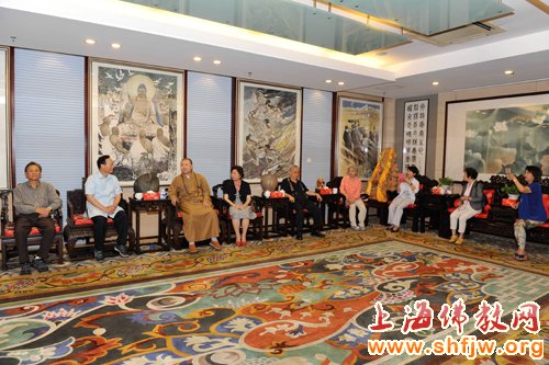 2014年6月9日上午9时,台湾台北艋舺龙山寺信众一行17人在台北市艋舺龙山寺副董事长黄书玮居士的带领下,来到上海玉佛禅寺参访。中国佛教协会副会长、上海市佛教协会会长、玉佛禅寺方丈觉醒大和尚在觉群楼接待厅热情地接待了来宾一行,带领台湾客人参观了玉佛寺的主要景点。