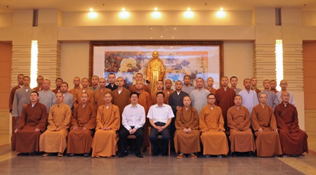 中国佛教协会、新加坡佛学院领导与录取新生合影留念