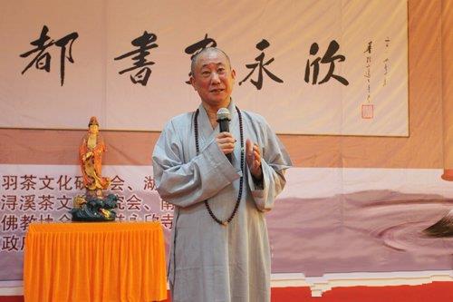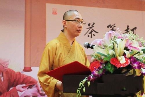 湖州市佛教协会会长法心大和尚宣布下一届湖州市禅茶文化节暨禅茶大会承办单位