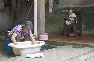 5月22日,邱阿姨在给孩子洗澡。邱阿姨来寺庙8年了,主要负责照顾刚出生的孤儿和智障儿童。