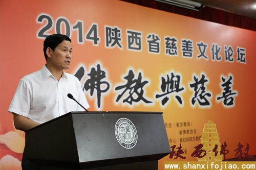 为发挥佛教慈悲济世的优良传统,推动陕西省慈善事业的健康发展,迎接第27届世界佛教徒联谊会在陕西省宝鸡市召开,2014年7月24日,由陕西省宗教事务局、陕西省慈善协会、陕西省佛教协会、陕西省慈善文化研究中心、陕西省社科院宗教研究所联合主办的《“佛教与慈善”——2014陕西省慈善文化论坛》在西北大学萃园宾馆多功能厅举办。