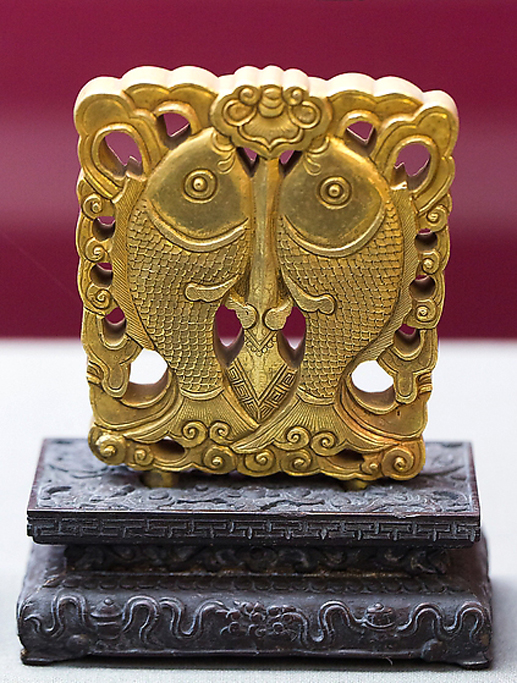 佛教以其喻示超越世间、自由豁达得解脱的修行者,以雌雄一对金鱼象征解脱的境地,又象征着复苏、永生、再生等意。金鱼的眼睛象征佛眼,金鱼眼睛常开,就象佛时时刻刻照顾众生,永不舍离众生。