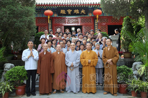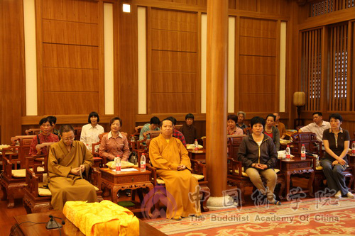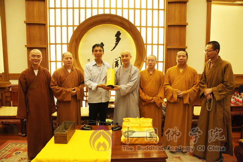 在我院会客厅,李大东居士介绍了《永年传世佛经》经典影刻再造的经过以及此次供奉的殊胜因缘。宗性宗师代表我院对宁波护经团一行来访我院表示热烈欢迎,并对向我院供奉《永年传世佛经》的护法居士团表示衷心的感谢!最后希望护法居士团把供奉佛经的无量功德回向给法界有情,并祈愿一切众生健康安乐,世界太平!