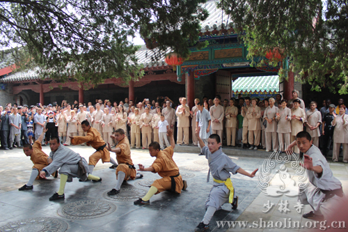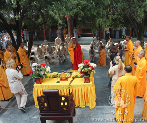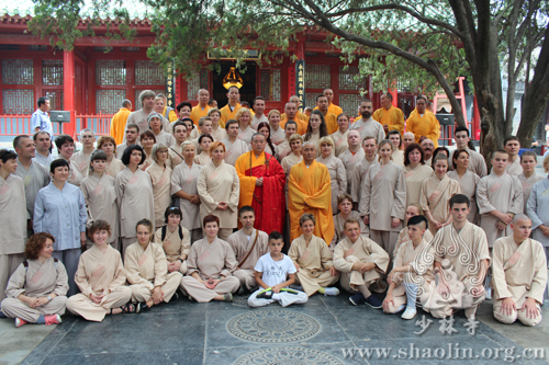 2014年7月6日,在延彬法师带领下,“少林功夫学校”一行71名学员归山朝圣少林寺,并向师父们汇报修行成果,受到方丈永信法师及僧众的热情接待。