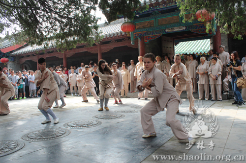俄罗斯少林功夫学校的学员们展示了五步拳、七星拳等经典的功夫招式,赢得少林僧人及中外游客的阵阵掌声。