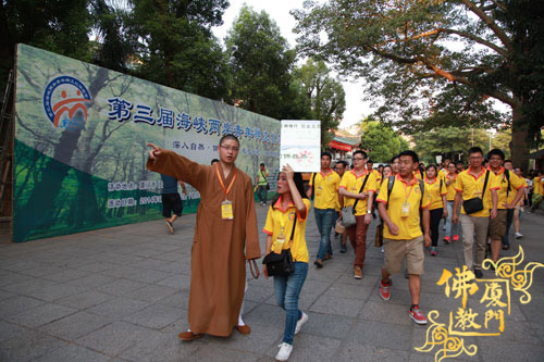 2014年7月17日至22日“第三届海峡两岸青年禅文化体验营”活动在厦门和武夷山举行。本次活动以“深入自然、体验禅悦、感恩怀德、欢喜结缘”为主题,由厦门市青年联合会、台北市童军会、金门县童军会共同主办,厦门市佛教协会、台北市佛教会、金门县佛教会、厦门南普陀寺和厦门市青年两岸交流协会联合承办。两岸青年伙伴将一起聆听禅学,亲近善知识,互相切磋,分享体验,进一步促进两岸青年一代的友好交流。