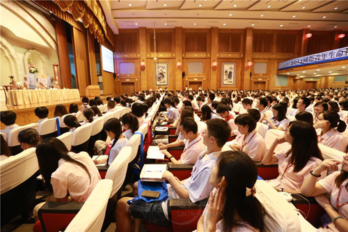 佛光山开山星云大师2014年7月18日在如来殿大会堂,向国际青年禅学营学员传授佛教根本意义。透过光明正向的思惟,诠释佛陀教法“苦空无常无我”,破除一般人对佛法消极解读的迷思。