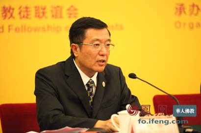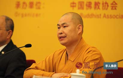 中国佛教协会副秘书长、世界佛教徒联谊会执委张琳主持新闻发布会(图片来源:凤凰网华人佛教 摄影:李保华)
