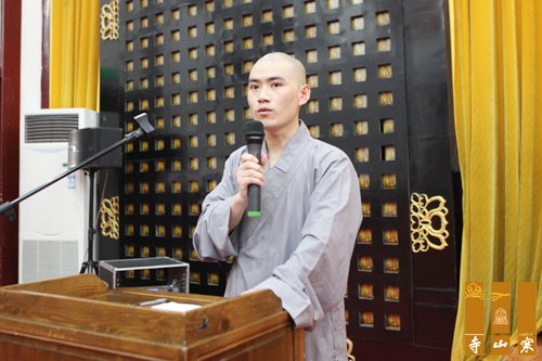 秋爽法师在讲话中,对第八届学僧共29名同学的顺利毕业表示诚挚的祝贺;向一直以来关心和支持寒山书院建设和发展的省市党和政府各级领导表示衷心的感谢;向寒山书院辛勤培养学生的法师和老师们,表示崇高的敬意。并向各位学僧提出三点希望:第一是希望各位感恩惜福;第二是要求各位知恩图报;第三是要求各位继续深造。普仁法师致辞,对第八届学僧圆满毕业表示祝贺!并希望学僧能感恩三宝的加持,弘扬佛法、续佛慧命不断贡献自己的力量。明学长老慈悲开示,“法门无量誓愿学”,毕业只是学习的开始,而不是结束。要立下宏愿大志,以为报众生恩、报国家恩、报三宝恩、报父母恩为终生的奋斗目标。