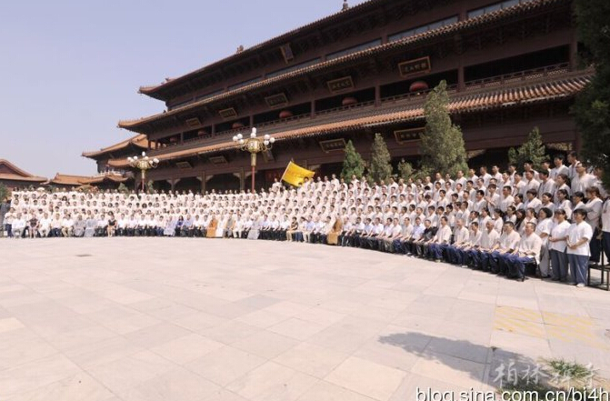 开营式结束后,全体来宾和营员、义工在万佛楼前合影留念。