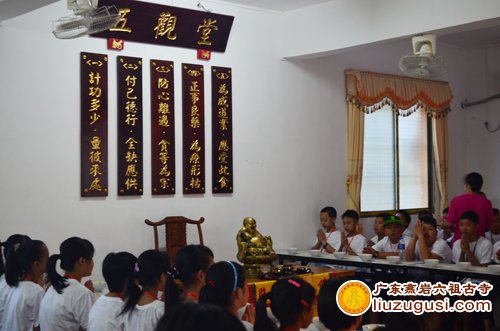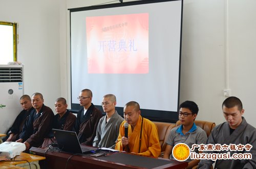 2014年7月23日,广东燕岩六祖古寺隆重举行夏令营开营典礼。宽静大和尚,惟哲法师,学生代表,连平县宗教局代表等在开营典礼上做了精彩演讲。