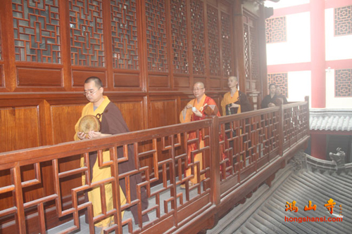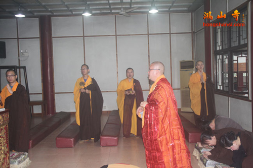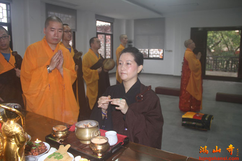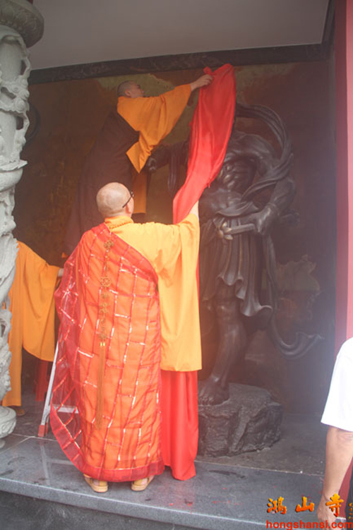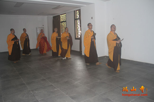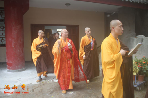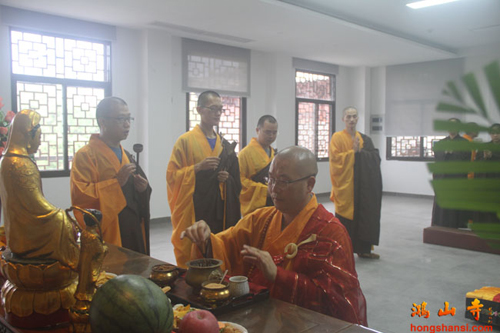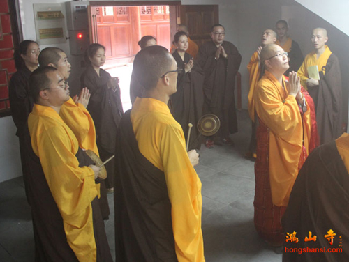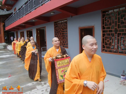 2014年7月23日上午7时许,鸿山寺住持法云法师率两序大众举行回迁入住洒净仪式。在临时活动场所的大雄宝殿内,众人迎请观世音菩萨圣像至新建鸿山寺的三圣殿内,安奉并洒净。随后,法云法师率众念唱《大悲咒》等,绕山门及各殿堂口。依次前往弥勒菩萨像、综合讲堂、山门殿、伽蓝殿、大雄宝殿、弥陀殿、大圣紧那罗王菩萨像、祖师堂、功德堂、福德正神前洒净、上供,最后返往三圣殿。祈愿鸿山寺山门清净、海众安和,众善信身体健康、吉祥如意。