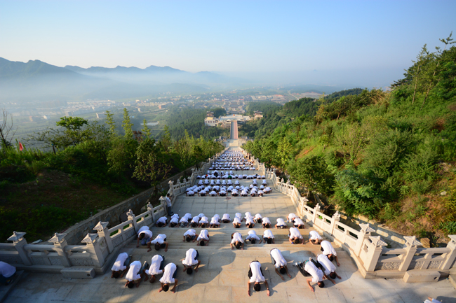 拜佛是“体力活”,何况天气这么炎热,无疑是对信仰与意志的考验。出发前,还为这帮年轻的学生捏把汗。因为在交流中,我们了解到,大多数同学并没有过拜佛的经历。但结果却让人意外,一个多小时的拜佛活动,每一个学子都成功地拜到了大佛脚下,整个过程非常圆满。看到大家汗流浃背,却欣然法喜的样子,我们深深被感动。信仰可以点燃心的力量。