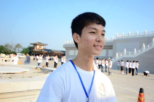在大佛台上,我们随机采访了几位同学。当问到她们累不累时,大家都说还好,虽然天气炎热,腿有点不适,但坚持更有意义。小曹同学说:“开始时有些累,但后来就不那么累了,因为心慢慢平稳下来。”“对拜佛有什么感受?”针对提问,小李很认真地回答:“心灵得到了净化,也加深了对佛法的理解。”然后,她们谈到了来夏令营每天都有收获,并举例说,在大寮洗碗让她们感受很深,看到大家那么发心,有效率,还有许多老义工认真投入的身影,她们体会到什么叫“默默欢喜的付出。”当问到她们,这次夏令营生活会对自己将来的人生有什么影响时,她们俩很自信地回答:“做好自己,遇事多为他人着想,种善因,才能收获善果”。