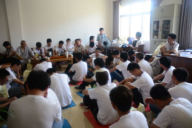 中午,文宣部特别邀请德天法师带领的小组来办公室,共同交流讨论。文宣部的师兄给同学们介绍了大佛建设的缘起,并就“拜佛的意义与利益”、“青年人的心理健康问题”、“佛法与人生的关系”等主题展开了讨论。师生们在互动中,畅谈感受,释疑解惑,气氛活跃。通过这样的活动,我们能深切地感受到,学子们对真理的渴求,也深深感受到佛法之于人生的重要意义。
