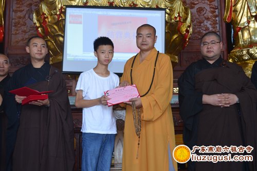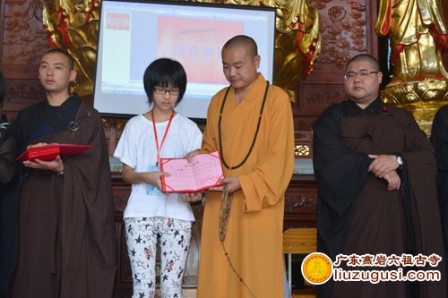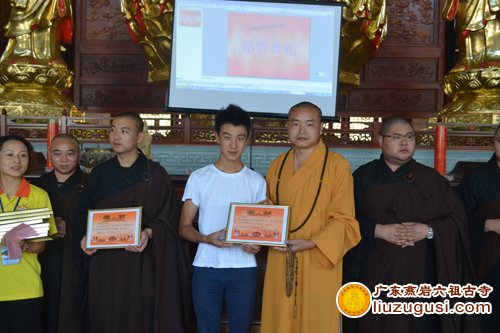 在此次夏令营活动快结束的时候,由澳门普善佛教慈善会副会长、澳门普善佛堂住持、广东燕岩六祖古寺住持宽静大和尚给孩子们颁发奖状和结业证书,并与孩子们合影留念,此次夏令营完美落幕。