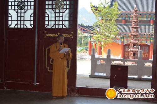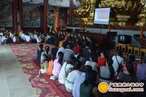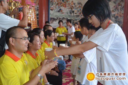 2014年7月29日,广东燕岩六祖古寺夏令营的第七天,同时也是此次夏令营活动的最后一天。当天由宽静大和尚,各法师,学生,以及赶赴而来的学生家长们全体向上礼佛三问讯。