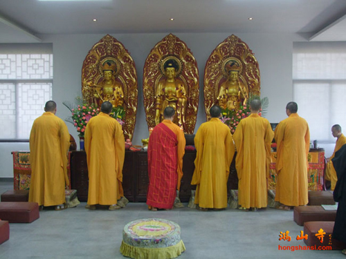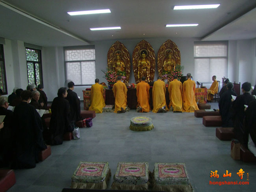 2014年7月27日,农历七月初一,鸿山寺在三圣殿内,举行超度法会。