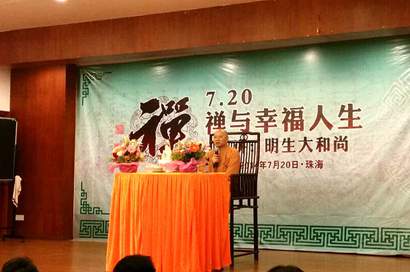 2014年7月20日上午10点,全国人大代表、中国佛教协会副会长、广东省佛教协会会长、广州光孝寺方丈、珠海普陀寺住持明生大和尚在珠海普陀寺做《禅与幸福人生》专题讲座。来自珠海禅文化研究会会员及各方善信近200人参加了讲座。