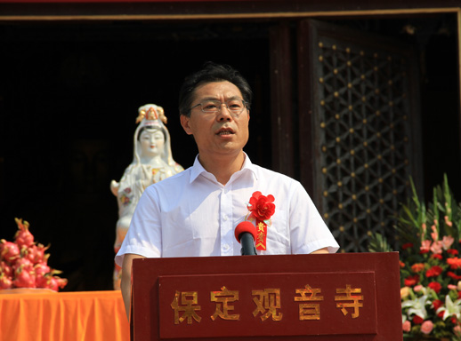 在此,我谨代表保定市民宗局对观音寺中兴20周年、对寂禅法师续任观音寺住持表示热烈的祝贺!对参加庆典法会的各位法师、各位居士及各位来宾表示热烈的欢迎和诚挚的问候!