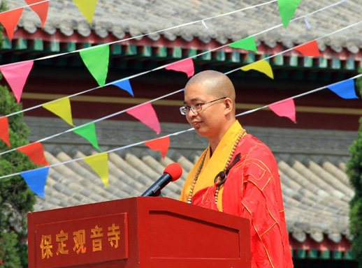 二十多年来,我始终坚持弘扬人间佛教,本着“推进心灵环保,共建人间净土”的宗旨,积极践行“以文化弘扬佛法,以教育培养人才,以慈善福利社会,以共修净化人心”的四大理念,对内弘化、对外交流,得到了党和政府的积极肯定,得到了社会的广泛认同。2013年,国家宗教局表彰观音寺为“全国创建和谐寺观教堂先进集体”。这些成绩的取得,得益于党和政府的大力支持,得益于历任清苑县县委副书记、保定市民族与宗教事务局局长的李同聚老领导的亲切关怀,得益于常住法师、护法居士、社会贤达的共同努力。所以借此机会对多年来,关心支持观音寺工作的各级领导和所有爱心人士表示最诚挚的谢意!