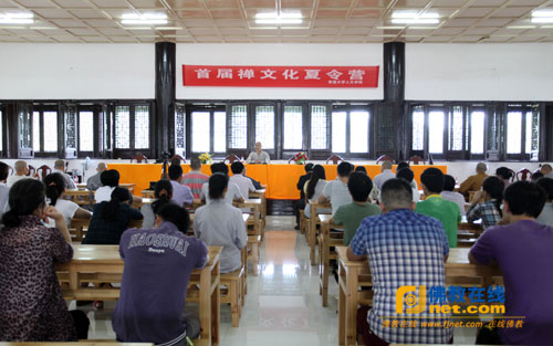 本次禅修营安排得很丰富,针对许多学员第一次参加禅修的情况,在7月4日晚上特别安排了一次禅修演习,由上饶玉山普宁寺方丈照荣法师为学员们讲禅堂规矩,边讲边练习。七天的禅修营活动中,安排了开示(闻法)、禅修(静坐)、早晚课(诵经)、过堂(用斋)、出坡(劳动)、佛学讲座。