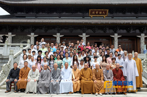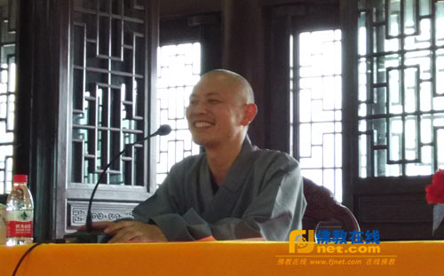 10日是结七的日子,百丈禅寺方丈顿雄法师登上讲台,为大家作了精彩的讲座,将自己的修行体会毫无保留地教给大家。南昌大学杨教授和学员代表温珍金上台进行了分享。他们谈到刚开始打坐的时候腿会疼,想到打坐疼痛是消业障,所以疼痛来了要生欢喜心,到后来打坐的时候感觉时间过得非常快,体验到了禅悦的欢喜。妙安法师作了总结发言,他首先感恩百丈寺方丈顿雄法师和百丈寺的常住法师的全力护持,居士们的尽心尽力;感恩南大组织学生前来体验禅修生活;感恩各位远道而来的学生和居士,妙安法师强调大家要多结善缘,结善缘能让我们想什么事都能成就,我们要不断地结善缘,要结觉悟的善缘、结成佛的善缘,要把我们在禅修营中学到的打坐的方法、百丈的清规戒律带到生活中去,保持良好的习惯,生活处处都是修行。