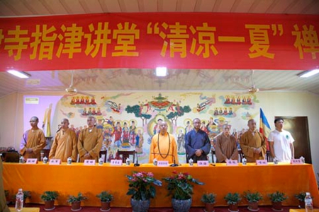 指津寺监院永军法师致欢迎辞,并宣布首届禅修夏令营开营。