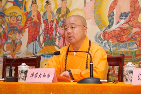 绍兴市佛教协会会长、炉峰禅寺方丈净芳法师发言