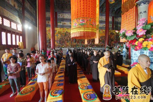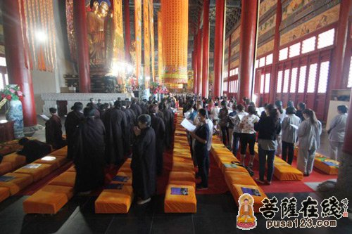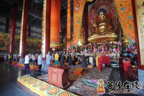各地信众纷纷云集到大雄宝殿参加法会