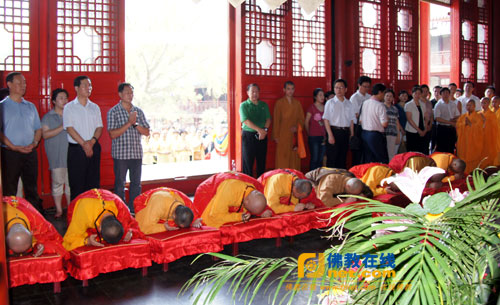 江苏省委统战部副部长、省宗教局李国华局长,省宗教局王在郑副局长,南京市委常委、市委统战部李世贵部长,南京市人民政府陈刚副市长,南京市民宗局李兰局长、张卫萍副巡视员,栖霞区政协副主席、区委统战部部长时效俊,以及南京市佛教协会副秘书长以上领导参加了祈福法会。