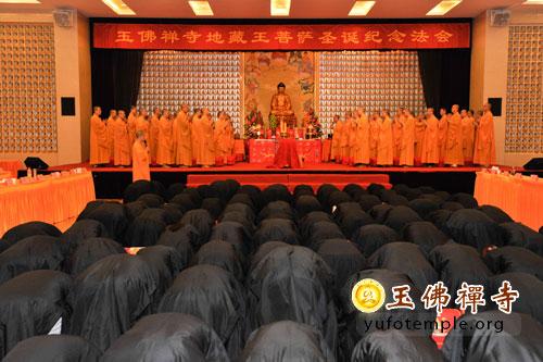 2014年8月24日,佛教地藏菩萨圣诞纪念日。上海玉佛禅寺在寺内觉群楼多功能厅举行2014甲午马年地藏王菩萨圣诞纪念法会。约五百位信徒在寺院法师的带领下,恭诵地藏菩萨本愿功德经,随堂超荐、上供。