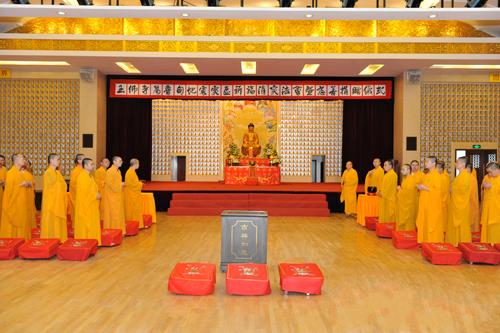 法会开始前,觉醒法师讲话,表达了寺院僧职员工对地震灾区民众的牵挂之情,希望受灾群众听从当地政府的指挥,抗灾自救、重建家园。之后,觉醒法师代表玉佛禅寺通过上海市慈善基金会向地震灾区捐赠人民币50万元,帮助灾区民众重建家园,上海市慈善基金会副理事长吴幼英女士代表市慈善基金会接受了捐款。