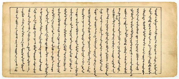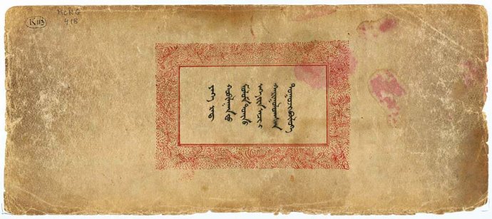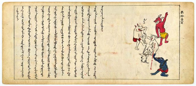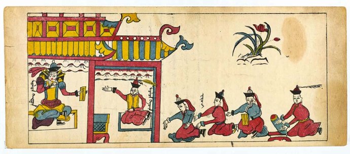 本画册来自于喀尔喀蒙古扎萨克图汗旗 正面蒙古文字,背面手绘彩图。