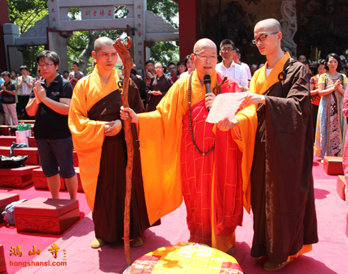 2014年8月25日上午10点,鸿山寺在新寺院隆重迎请四十一尊玉佛圣像,三宝佛、千手观音、文殊、普贤、三十三观音及阿难、迦叶,并为圣像举行装藏仪式。鸿山寺住持法云法师亲自主法。护法善信热情踊跃,以诸珍宝供奉圣像,庄严道场。同沐佛恩,共沾法喜。