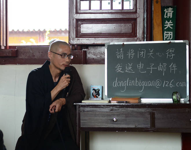 2014年8月25日,来自全国各地的百位净业行人,结束在东林寺闭关中心的10日及24日的信愿持名闭关修行,于下午2时圆满出关,随后参加了两个多小时的闭关感言交流活动。闭关中心负责人德天法师主持了此项活动。