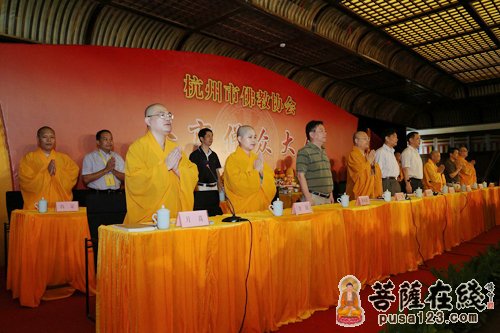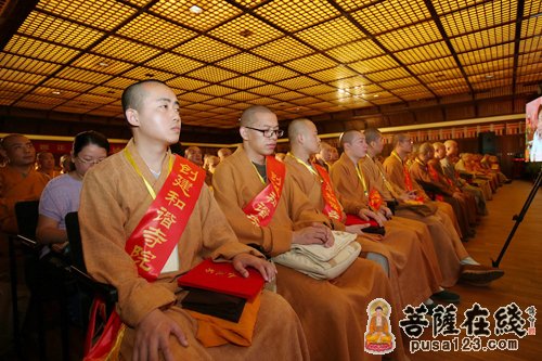 2014年8月13日上午9点许,杭州市佛教协会在杭州佛学院隆重召开全市僧众大会,并现场表彰了一批优秀法师,来自杭州市各区县(市)佛协、寺院、市属各大寺院的法师、杭州佛学院师生等900多人参加了大会。