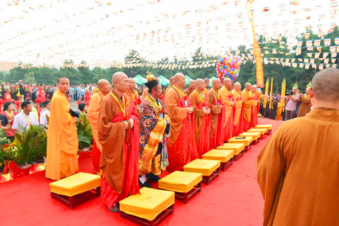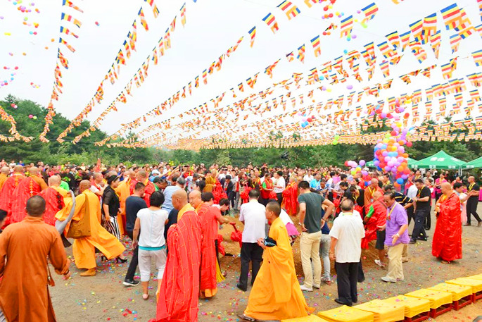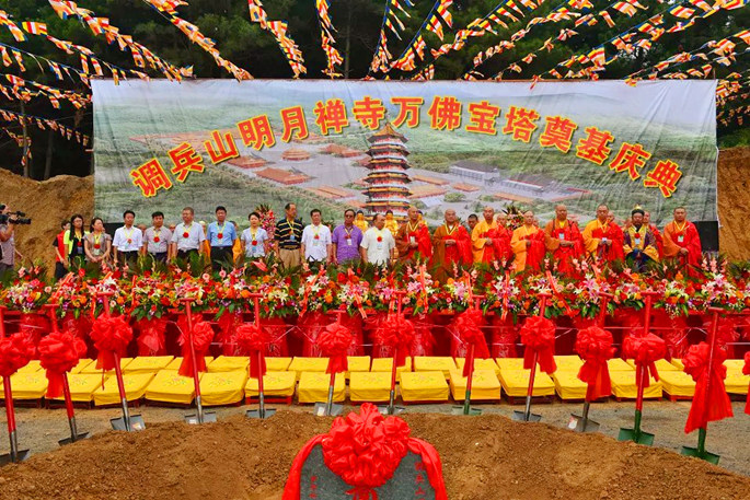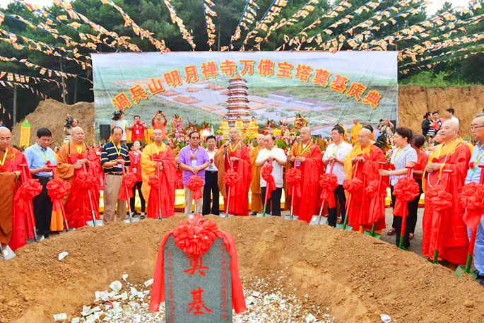 2014年公历8月15日10时, 辽宁省调兵山市明月禅寺隆重举行“万佛宝塔”奠基仪式。现场礼炮齐鸣。来自全国各地诸山长老、高僧大德、各级领导及十方信众亲临现场,共同见证了明月禅寺的这一盛事时刻。