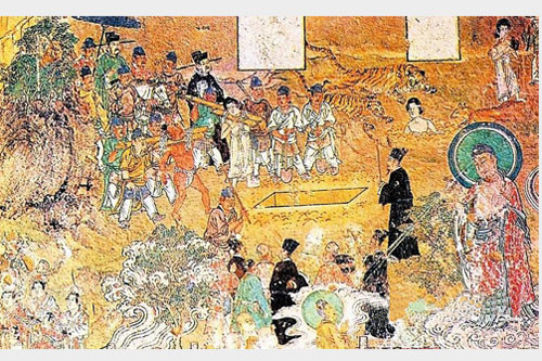 佛教最早的壁画是阿旃多、悉耆利耶等石窟所绘之壁画,系印度笈多王朝时期的遗存。我国最早的壁画是东晋明帝于太宁元年(323)大内乐贤堂所绘的释迦佛像。我国现存最古的壁画是敦煌出土的净士变相壁画。