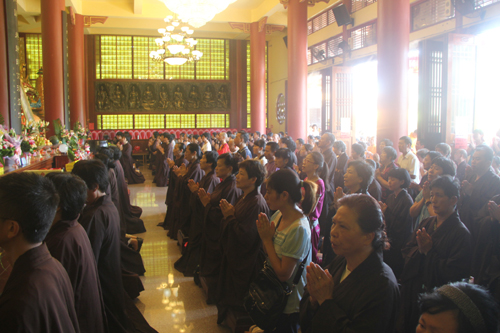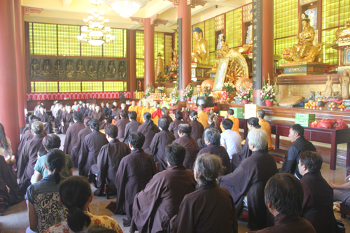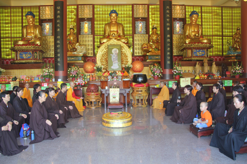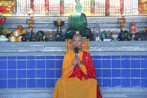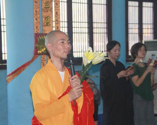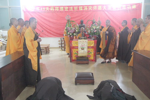 2014年8月24日上午10时,时值地藏王菩萨圣诞日,同时也是本寺举行地藏菩萨昼夜精进七圆满日。上午10时,礼请石室禅院住持忠明法师主法,并先后率众至琉璃宝塔和地藏殿内敬香上供。随后,下午13时在药师密坛内举行皈依仪式。