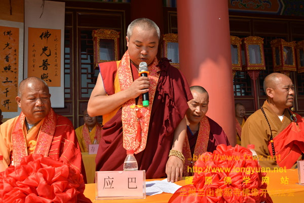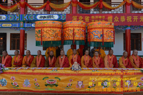中国佛教协会副会长、陕西省佛教协会会长增勤大和尚,中国佛教协会副秘书长、河南省佛教协会副会长印乐大和尚,中国佛教协会教务部副主任长顺大和尚,甘肃省佛教协会副会长、兰州市佛教协会会长理因大和尚,陕西省佛教协会副会长、陕西草堂寺方丈谛性大和尚,陕西省佛教协会副会长、陕西大兴善寺方丈宽旭大和尚,陕西省佛教协会副会长、陕西香积寺方丈本昌大和尚,甘肃省佛教协会副会长、平凉市佛教协会会长、崆峒山法轮禅寺方丈妙林大和尚,甘肃省佛教协会副会长、天水市佛教协会会长悟空大和尚,甘肃省佛教协会副秘书、酒泉市佛教协会会长道证大和尚等三十余位大德法师应邀出席,并共同主持了开光仪式。