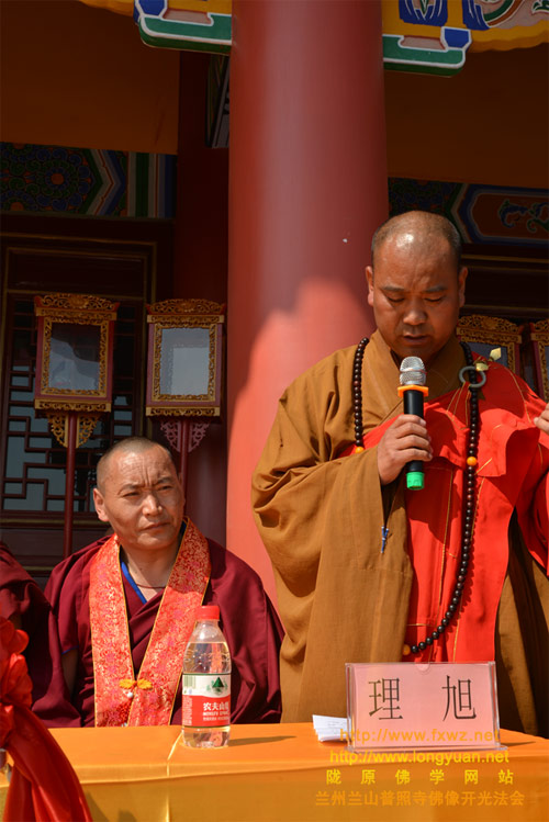 普照寺住持理旭法师为来宾介绍寺院修建情况