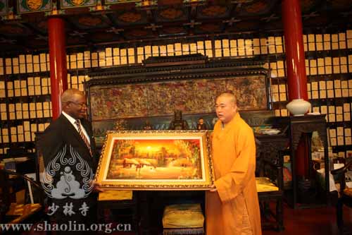 马丁•姆巴纳大使向永信方丈赠送礼物