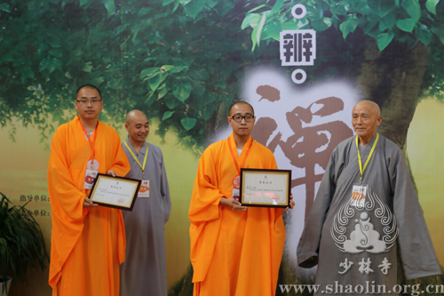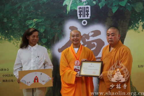 颁奖仪式上,释永信方丈、蔡志忠先生亲自为一等奖获得者圆普法师颁奖;宗性法师、绍云长老为二等奖获得者颁奖;普明法师、海轮法师、本如法师为三等奖获得者颁奖;安虎生先生为12位勤策奖获得者颁奖。其中,前六位辩手每人将获得蔡志忠先生的一副画以及纪念奖品。