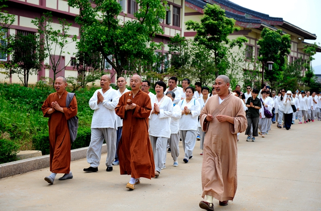 据带队的倪居士介绍,随行人员中除出家师父外,在家居士均是参加老祖寺暑期“生活禅”夏令营的营员,并且大都已皈依受戒。此次自老祖寺到净土苑,并朝礼东林大佛,是夏令营活动安排中的重要一项。居士们大都来自河北,职业以教师为主,大多数人都是初次现场瞻仰大佛圣容。