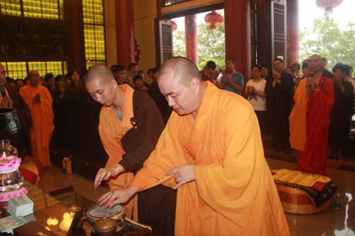 2014年8月17日下午16时,石室禅院隆重举行“昼夜精进报恩地藏七”洒净仪式。