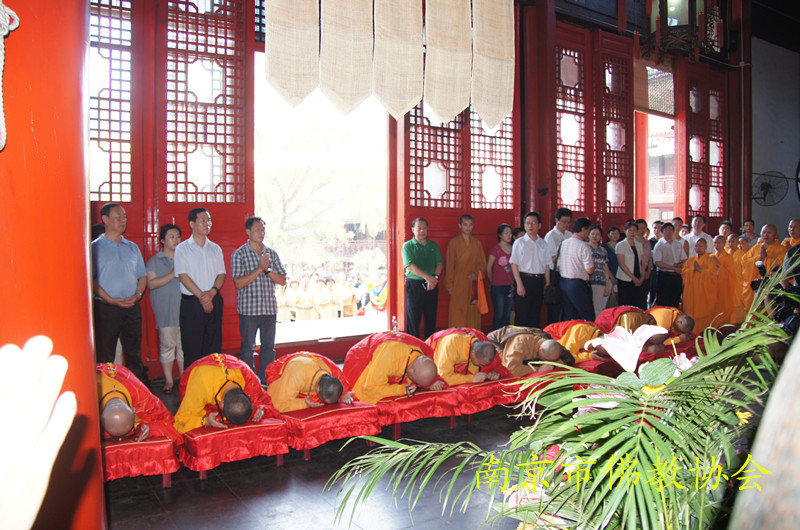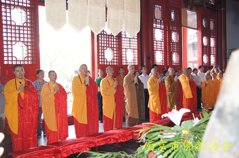 江苏省委统战部副部长、省宗教局李国华局长、王在郑副局长,南京市委常委、市委统战部李世贵部长,南京市人民政府陈刚副市长,南京市民宗局李兰局长、张卫萍副巡视员,栖霞区政协副主席、区委统战部部长时效俊,以及南京市佛教协会副秘书长以上领导参加了祈福法会。