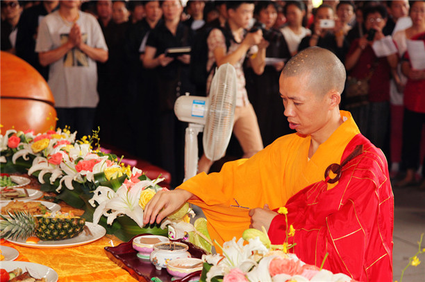 2014年农历七月十五日,智灯大和尚、门一大和尚、昌悟法师分别主持法会,代表所有参与本届活动的佛教四众弟子及善男信女,将此殊胜功德回向给十方法界众生,特别回向给云南灾区的人们,祈愿众生离苦,祈福世界和平。