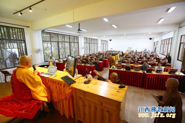 2014年7月28日上午8时,曹洞祖庭宜黄县曹山寺道场清净,寺宇庄严,禅修夏令营在这里举行。应曹山寺住持养立法师之请,省佛教协会纯一会长前往讲授达摩禅,来自省内外的法师和信众200余人参加,同时宜黄县调研员、县委统战部部长黄鸣儿等有关地方领导一同参加此次讲座。