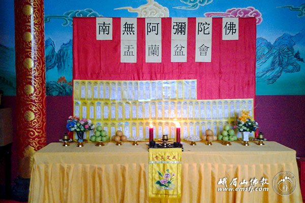 2014年8月4—10日(农历七月初十至十五),峨眉山雷洞坪灵觉寺启建盂兰盆诵经法会,法会期间,每天都将由法师、信众供养三宝,念诵《盂兰盆经》《地藏经》等大乘经典及佛菩萨圣号,以此修行功德救济亡故亲友离苦得乐,祈求现生亲友健康长寿,祈愿国泰民安、灾祸永息。